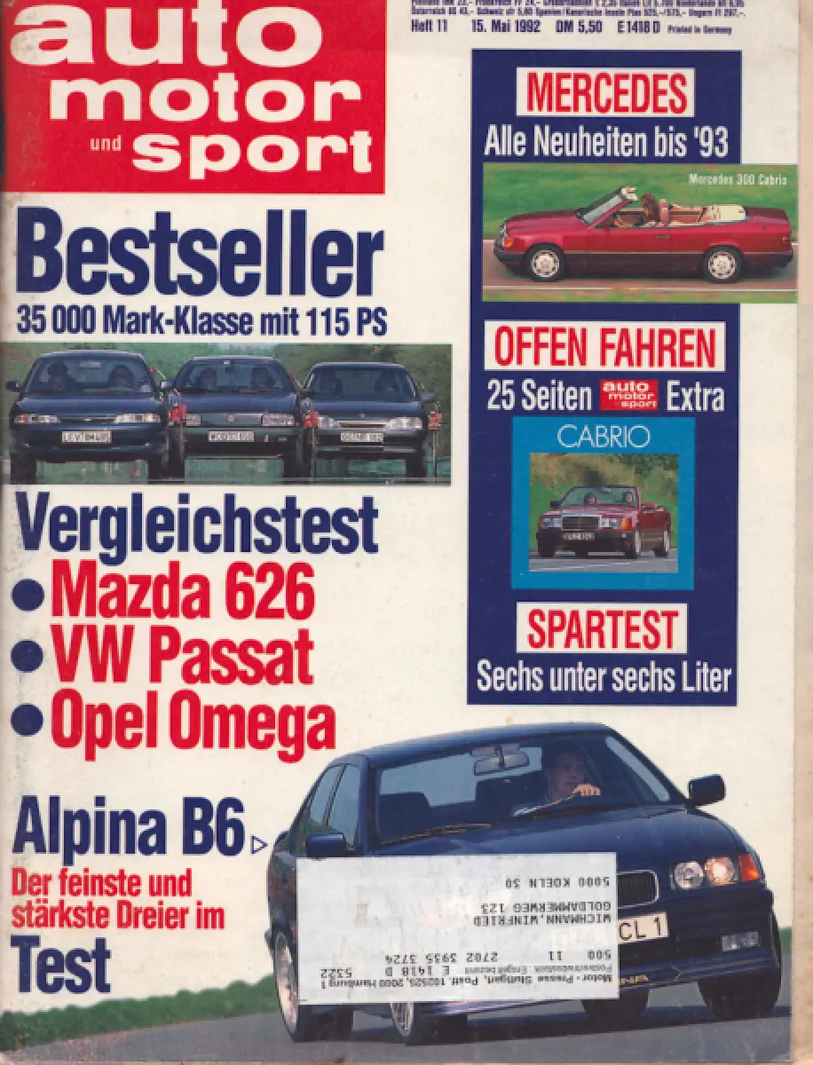 BMW Alpina B 6 2.8 Audi 100 2.6 E Mazda 626 2.0i GLE / Opel Omega 2.0i GL / VW Passat 2.0 GL Porsche 928 GTS Ford Scorpio Turnier 2.0i Rover 827 Si Mit Gebrauchsspuren