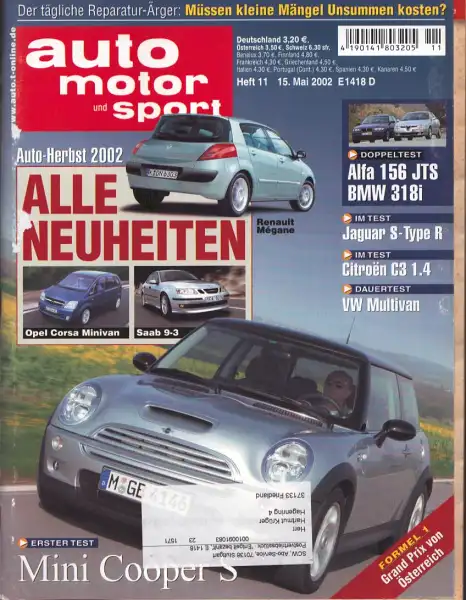 Mini Cooper S Alfa Romeo 156 2.0 JTS / BMW 318i Smart Crossblade VW T 4 Multivan 100 000 km Jaguar S-Type R Honda CR-V LS / Peugeot 206 HDI eco 70 / Chrysler PT Cruiser 2.2 CRD / Mercedes-Benz A 210 Evolution Citroen C 3 1.4 Bentley Arnage T Mit Gebrauchsspuren