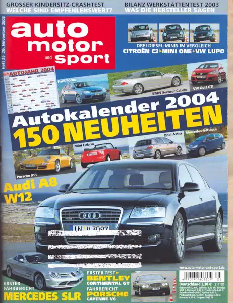 Mercedes-Benz SLR McLaren Ford Focus C-Max 1.6 TDCi / Renault Scénic 1.9 dCi / VW Touran 1.9 TDI Porsche Cayenne V 6 / Subaru G3X Justy 1.3 Citroen C 2 1.4 HDI / Mini One D / VW Lupo 1.4 TDI Mazda RX-8 Renault Laguna Grandtour 100 000 km Bentley Continental GT Mit Gebrauchsspuren
