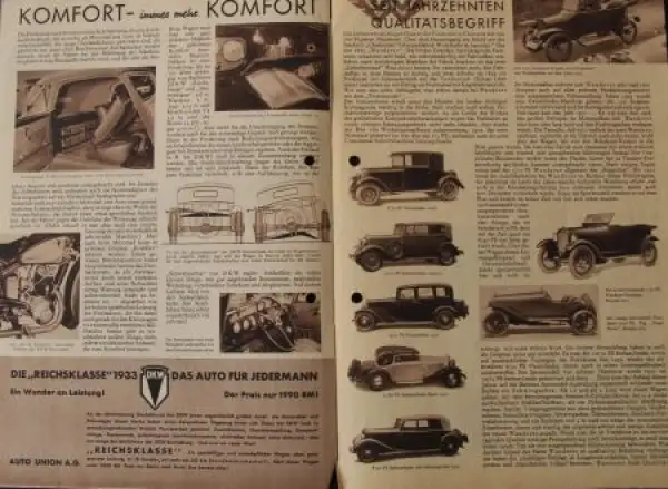 Auto-Union Modellprogramm 1933 "Einst und jetzt" Automobilprospekt (7037)
