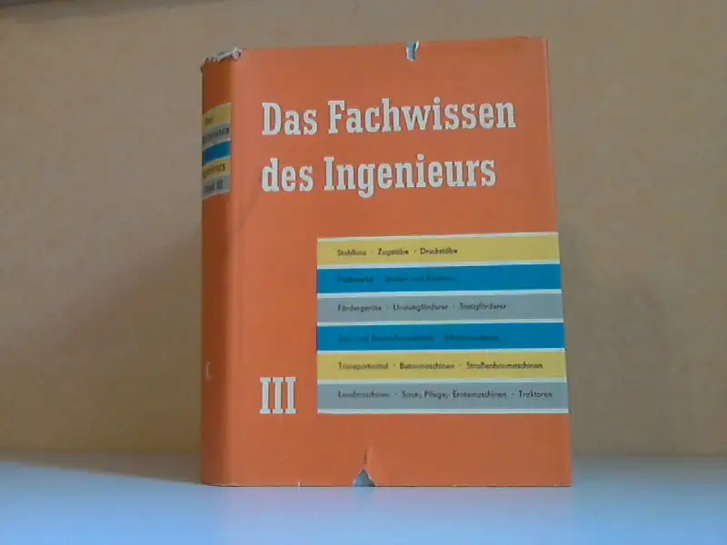 das Buch ist ein Dachbodenfund, gebräunt, fleckig, Umschlagkanten mit stärkeren Bestoßungen, aus dem Inhalt: Band 3: Stahlbau - Fördergeräte - Bau- und Baustoffmaschinen - Landmaschinen und Traktoren. Beschreibung vom Antiquariat Ardelt 1a6a Antiquariat Ardelt