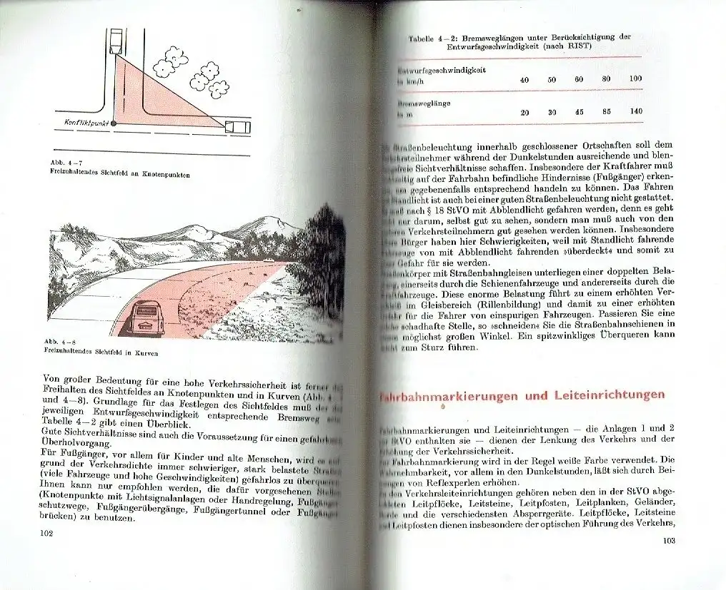 guter Zustand, geringe Gebrauchs- und Alterungsspuren: Umschlag und Seiten teils etwas eselsohrig - Rückseite teils leicht wellig - Seiten sauber und ordentlich - Rücken unten leicht gestaucht - Einbandecken und -kanten teils gering abgenutzt, Eine hohe Verkehrssicherheit auf den Straßen unserer Republik ist unser gesellschaftliches und persönliches Anliegen, denn Unfälle müssen nicht sein. Kraftfahrer, Radfahrer und Fußgänger können sie verhindern — vorausgesetzt, sie nehmen zu jeder Zeit mit wachen Sinnen am Straßenverkehr teil, genau wissend, daß ihr persönliches Verhalten die Sicherheit im Straßenverkehr mit bestimmt. Wir alle wissen aber auch, daß es noch unvorsichtige, leichtsinnige, uneinsichtige und sogar verantwortungslose Verkehrsteilnehmer gibt, die mit ihrem Fehlverhalten schon so manch eine heikle Situation heraufbeschworen haben und noch immer heraufbeschwören. Wir alle können sie erziehen, ihnen ihr Fehlverhalten klarmachen und sie so in die übergroße Mehrzahl der Verkehrsteilnehmer einbeziehen, die den § 1 der Straßenverkehrs-Ordnung (StVO) stündlich mit Leben erfüllt, d. h. in jeder Verkehrssituation Vorsicht und gegenseitige Rücksichtnahme walten läßt. Wie kann das geschehen? Experten des Straßenverkehrs —ein Staatswissenschaftler, ein Psychologe, ein Mediziner, mehrere Techniker, ein Jurist und ein Versicherungsfachmann — haben sich zusammengetan und legen ihre Erfahrungen auf dem Gebiet der Verkehrssicherheit dar, hoffend, damit dazu beizutragen, daß Vorsicht und gegenseitige Rücksichtnahme zum Allgemeingut aller Verkehrsteilnehmer werden, denn über eine hohe Verkehrssicherheit auf unseren Straßen entscheidet der Mensch. Sie als Verkehrsteilnehmer haben diese Entscheidung täglich zu treffen. Treffen Sie sie so, daß die Sicherheit auf den Straßen und damit auch Ihre persönliche Sicherheit von Tag zu Tag größer wird. Möglichkeiten dazu zeigt Ihnen diese kollektive Arbeit. Verkehrsperspektiven in der DDR • Der gesunde und kranke Verkehrsteilnehmer • Lebensalter und Verkehrsangepaßtheit • Fahrtauglich oder nicht? • Medikamente und Verkehrsteilnahme • Alkohol und Alkoholnachweis • Lichtsignalanlagen und Gelblichtproblematik • Das sichere Kraftfahrzeug • Kraftschluß und Kraftschlußkreis • Fahrbahneinflüsse • Seitenwind und Richtungsstabilität • Diagnosetechnik und -methoden • Verkehrsverhalten aus juristischer Sicht • ABAO 361/2 • Selbstreparatur • Fakulta • Kasko-, Unfall- und Auslandsversicherung, kartoniert, ca. 14,5 x 21,5, 183 Seiten mit zahlreichen Bildern