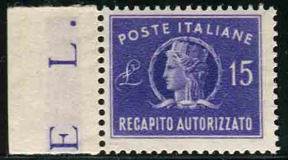 Vollgummi - Autorisierte Lieferung Lire 15 Nr. 10 mit Wasserzeichen in hochwertiger DB-Position - sehr guter B. von f. - Selten - Kat. euro 225 n. 705/6