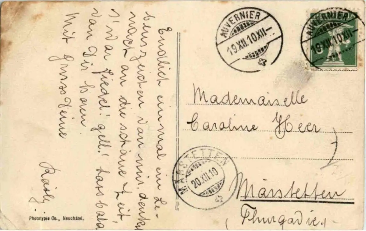 Danke. Alles Bestens. Können Sie mir allenfalls mitteilen, aus welchem Jahr die Postkarte stammt? Besten Dank.