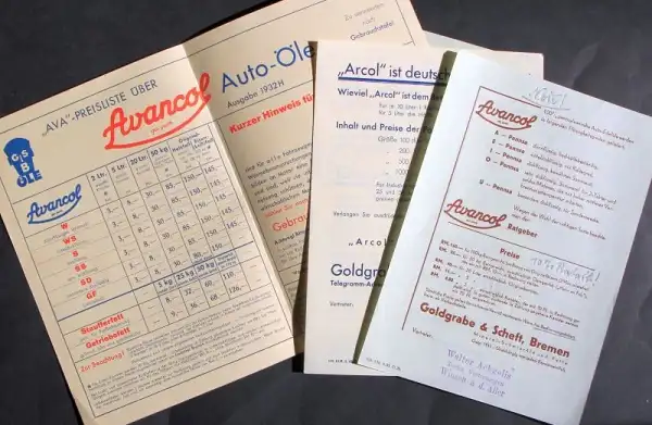 Avancol Edel-Autooel 1932 Prospekt und Preisliste (2738)