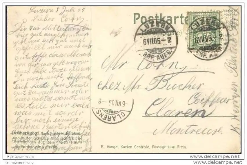 Axenstrasse - Verlag F. Voege Luzern - leichte Gebrauchsspuren (G20624) gel. 1905