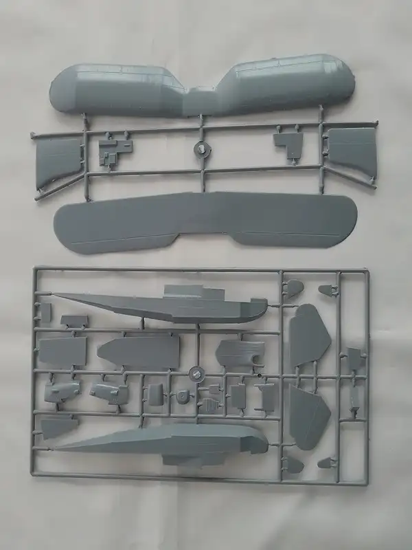 Einzelteile (Plastikbauteile) sind noch am Rahmen fixiert. Sichthülle wurde geöffnet