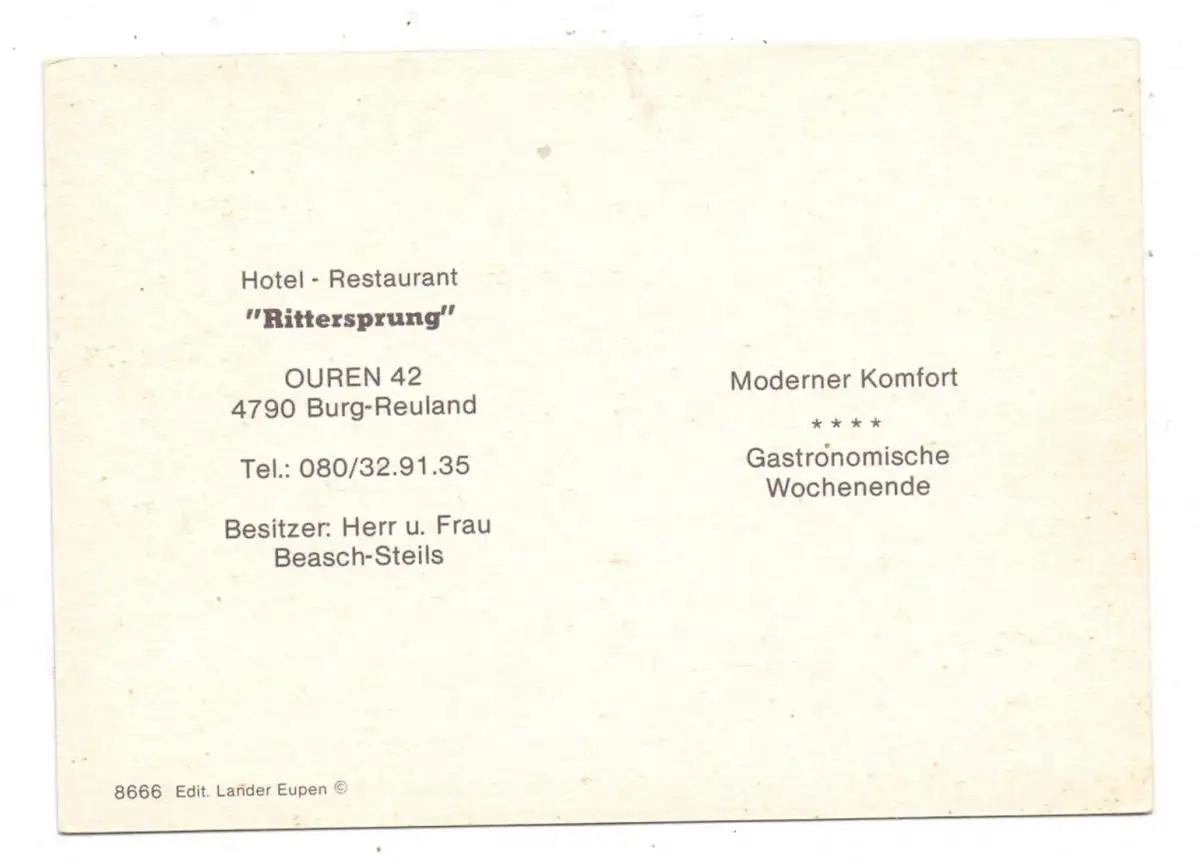 B 4790 BURG - REULAND, Hotel Restaurant "Rittersprung"