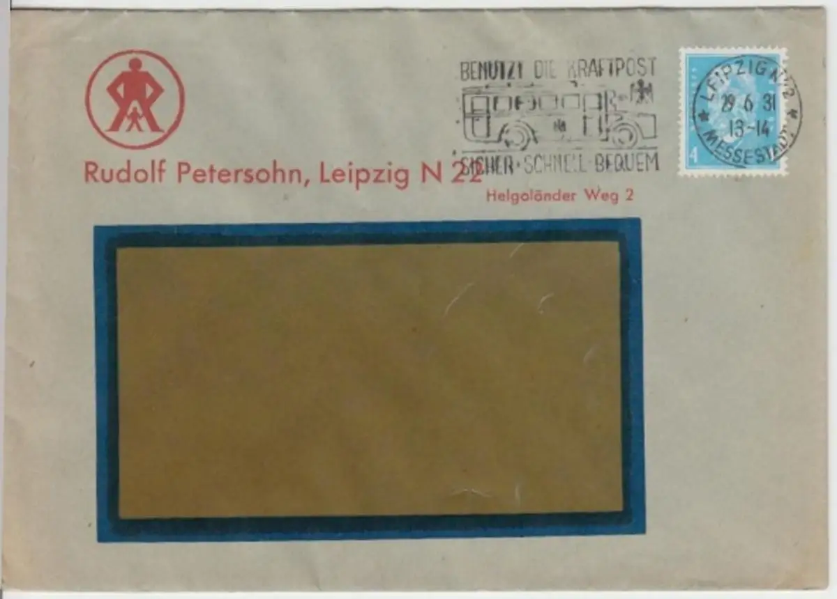 (B306) Bedarfsbrief Rudolf Petersohn Leipzig DR 1931 Mi 454