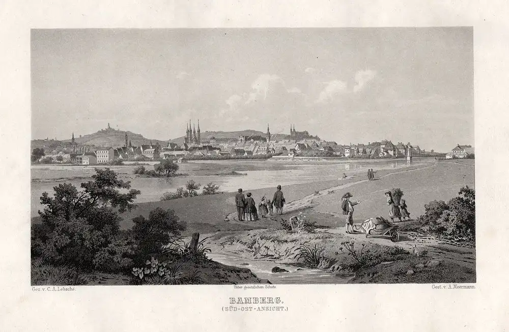 BAMBERG - Totalansicht von Süd-Ost - Aquatinta Stahlstich um 1870