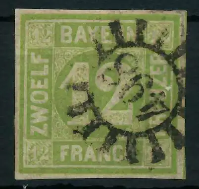 BAYERN MÜHLRADSTEMPEL AUF Nr 12 gMR 498 zentrisch gestempelt 883EEE
