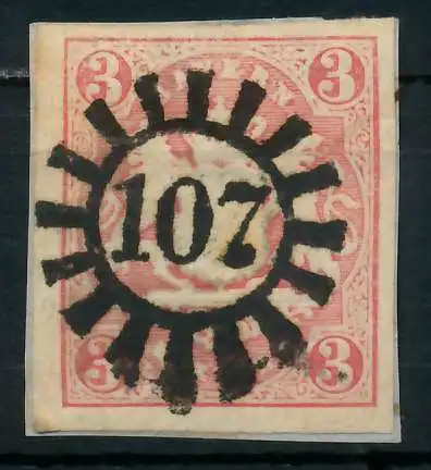 BAYERN MÜHLRADSTEMPEL AUF Nr 15 gMR 107 zentrisch gestempelt 87C132