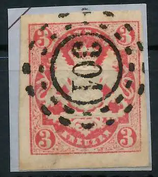 3 Kr rot, Freimarke, Staatswappen geschnitten, offener Mühlradstempel Nr. 301, Marktbreit Uf 4.- nach Sem, meist breitrandig