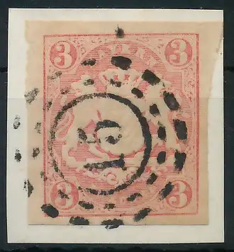3 Kr rot, Freimarke, Staatswappen geschnitten, offener Mühlradstempel Nr. 15, Amberg Op 3.- nach Sem, allseits breitrandig