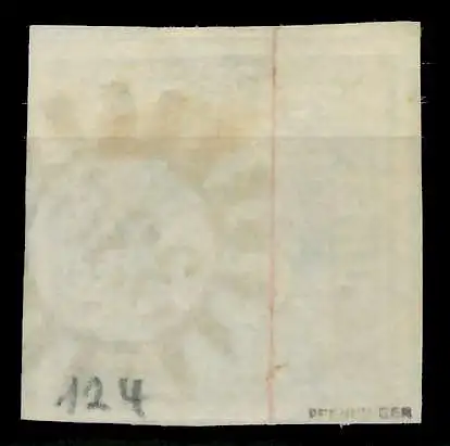 3 Kr blau, Freimarke, Wertziffer im Viereck (Quadratausgabe), allseits breitrandig, Stempel nach SEM 2.--, rückseitig kleiner Falzrest