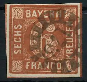 6 Kr braun, Freimarke, Wertziffer im Viereck (Quadratausgabe), geschlossener Mühlradstempel Nr. 173, I=Landau Pf 8.- / II=Günzburg Sc 18.- nach Sem
