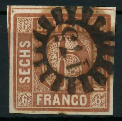 6 Kr braun, Freimarke, Wertziffer im Viereck (Quadratausgabe), allseits breitrandig, Stempel SEM 10,--, rückseitig sauber, Typensignatur, kleiner Falzrest