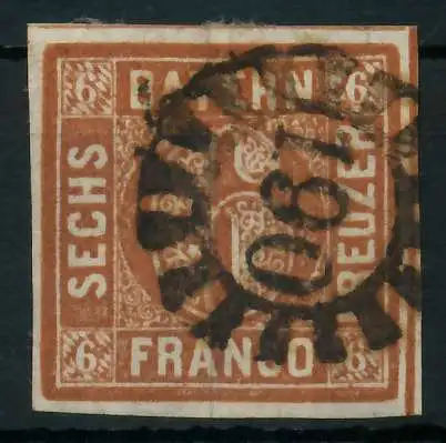 6 Kr braun, Freimarke, Wertziffer im Viereck (Quadratausgabe), allseits breitrandig, Stempel SEM 4,--, rückseitig kleiner Falzrest und etwas Papierfasern, dünnes Papier