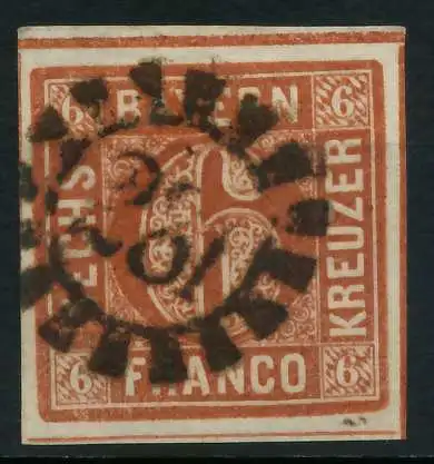 6 Kr braun, Freimarke, Wertziffer im Viereck (Quadratausgabe), allseits breitrandig, Stempel SEM 0,--, rückseitig sauber