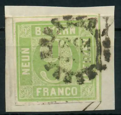 9 Kr grün, Freimarke, Wertziffer im Viereck (Quadratausgabe), normal- bis breitrandig, Stempel nach SEM 0,--