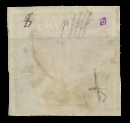 6 Kr braun, Freimarke, Wertziffer im Viereck (Quadratausgabe), allseits breitrandig, rückseitig sauber, Bleistiftnotizen/Signaturzeichen