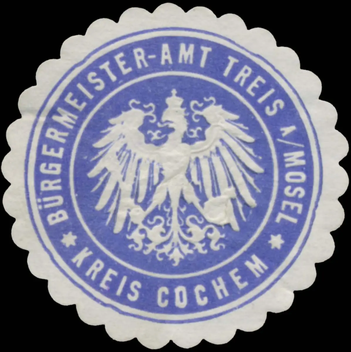 Kreis Cochem, blau, weiß, geprägt, Größe/Zustand: 4 , leicht beschädigt, Original Verschluss-Siegelmarke aus Papier welche früher von Behörden, Firmen etc. zum Versiegeln der Briefe benutzt wurden