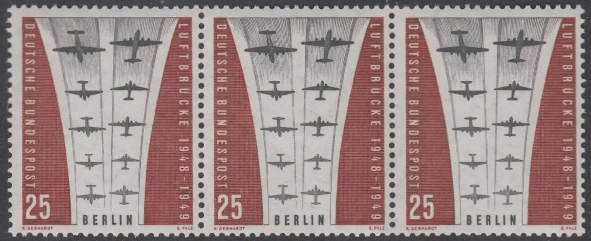 BERLIN 1959 Michel-Nummer 188 postfrisch horiz.STRIP(3) - Berliner Luftbrücke