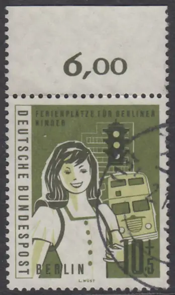 BERLIN 1960 Michel-Nummer 194 gestempelt EINZELMARKE RAND oben (a)