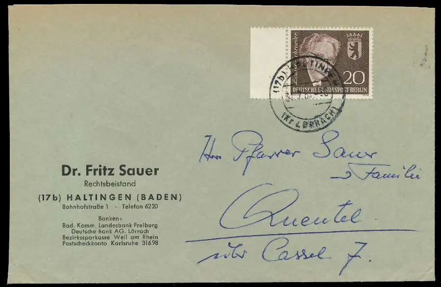 BERLIN 1961 Nr 198 BRIEF EF 906942