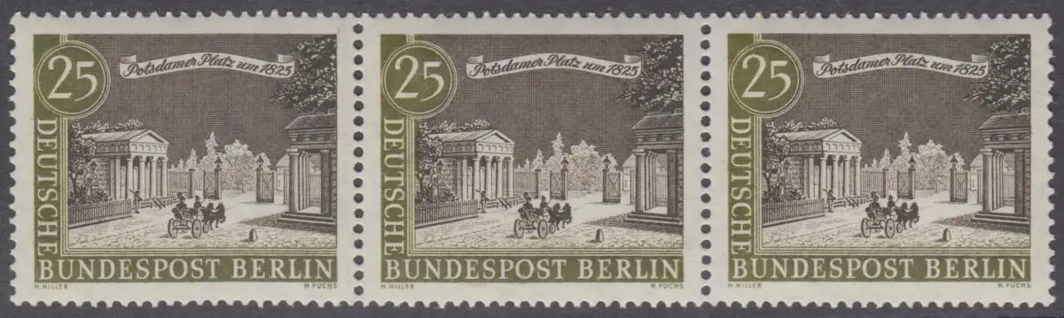 BERLIN 1962 Michel-Nummer 222 postfrisch horiz.STRIP(3) - Alt-Berlin: Potsdamer Platz