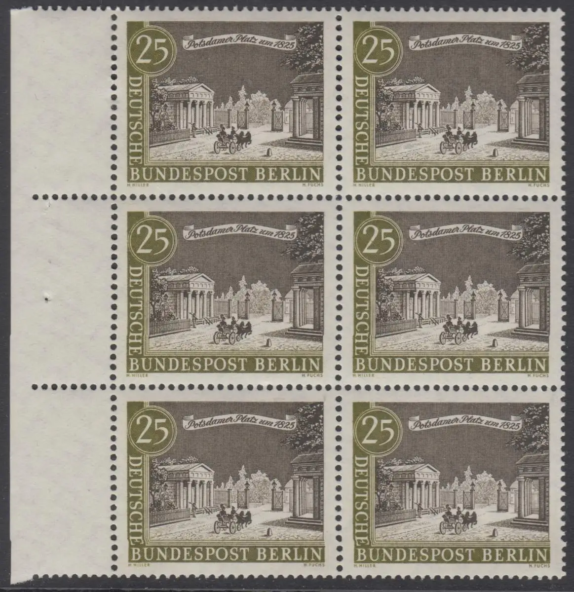BERLIN 1962 Michel-Nummer 222 postfrisch vert.BLOCK(6) RÄNDER links - Alt-Berlin: Potsdamer Platz