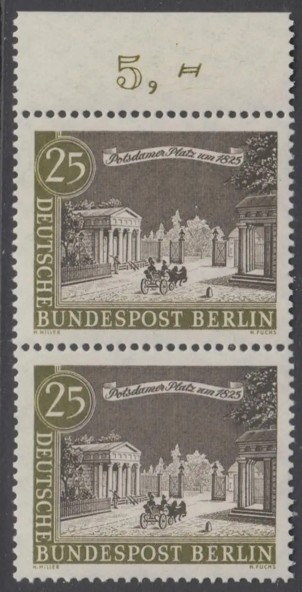 BERLIN 1962 Michel-Nummer 222 postfrisch vert.PAAR RAND oben (a) - Alt-Berlin: Potsdamer Platz