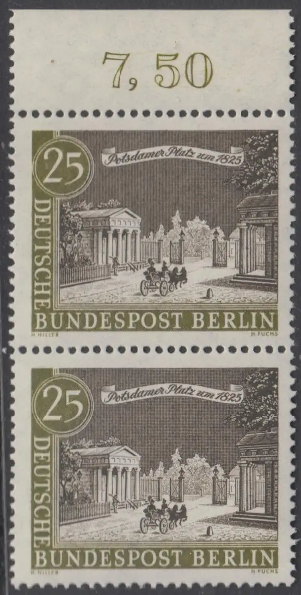 BERLIN 1962 Michel-Nummer 222 postfrisch vert.PAAR RAND oben (b) - Alt-Berlin: Potsdamer Platz