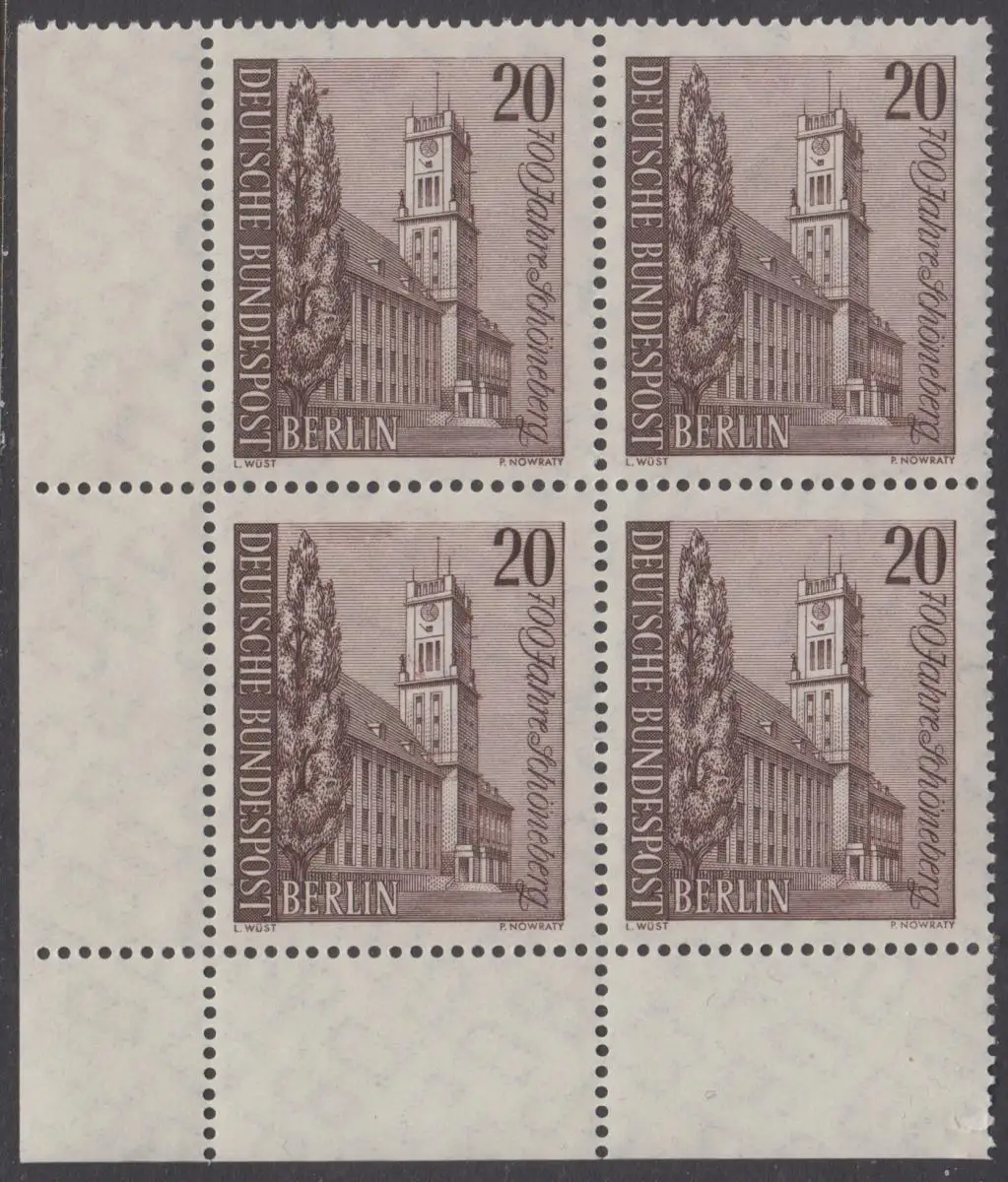 BERLIN 1964 Michel-Nummer 233 postfrisch BLOCK ECKRAND unten links - Schöneberg, Rathaus