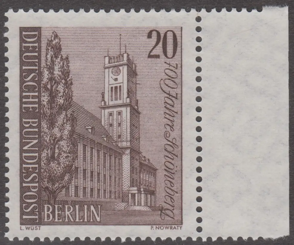 BERLIN 1964 Michel-Nummer 233 postfrisch EINZELMARKE RAND rechts - Schöneberg, Rathaus