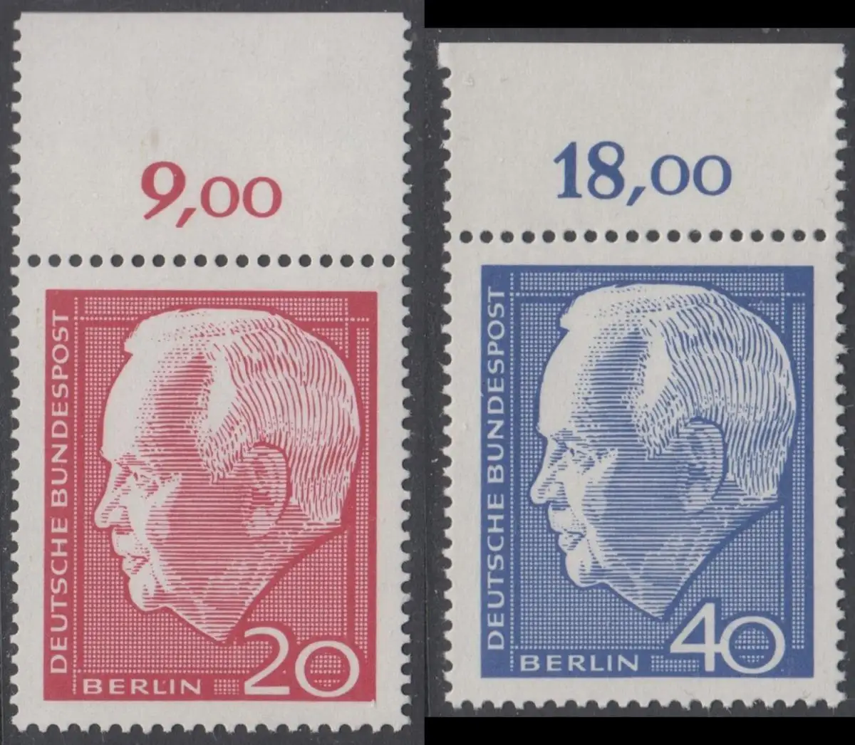 BERLIN 1964 Michel-Nummer 234-235 postfrisch SATZ(2) EINZELMARKEN RÄNDER oben (k) - Wiederwahl des Bundespräsidenten Heinrich Lübke