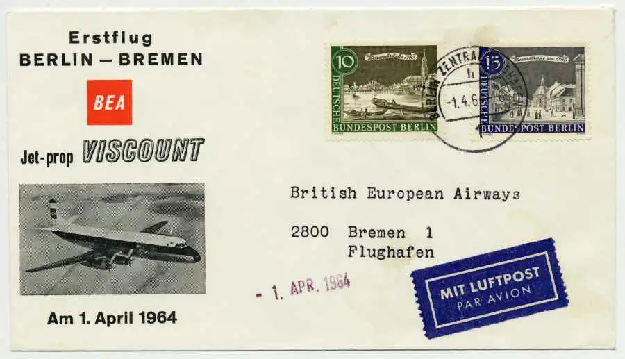 Erstflug Berlin - Bremen Jet Prop VISCOUNT 1.4.1964