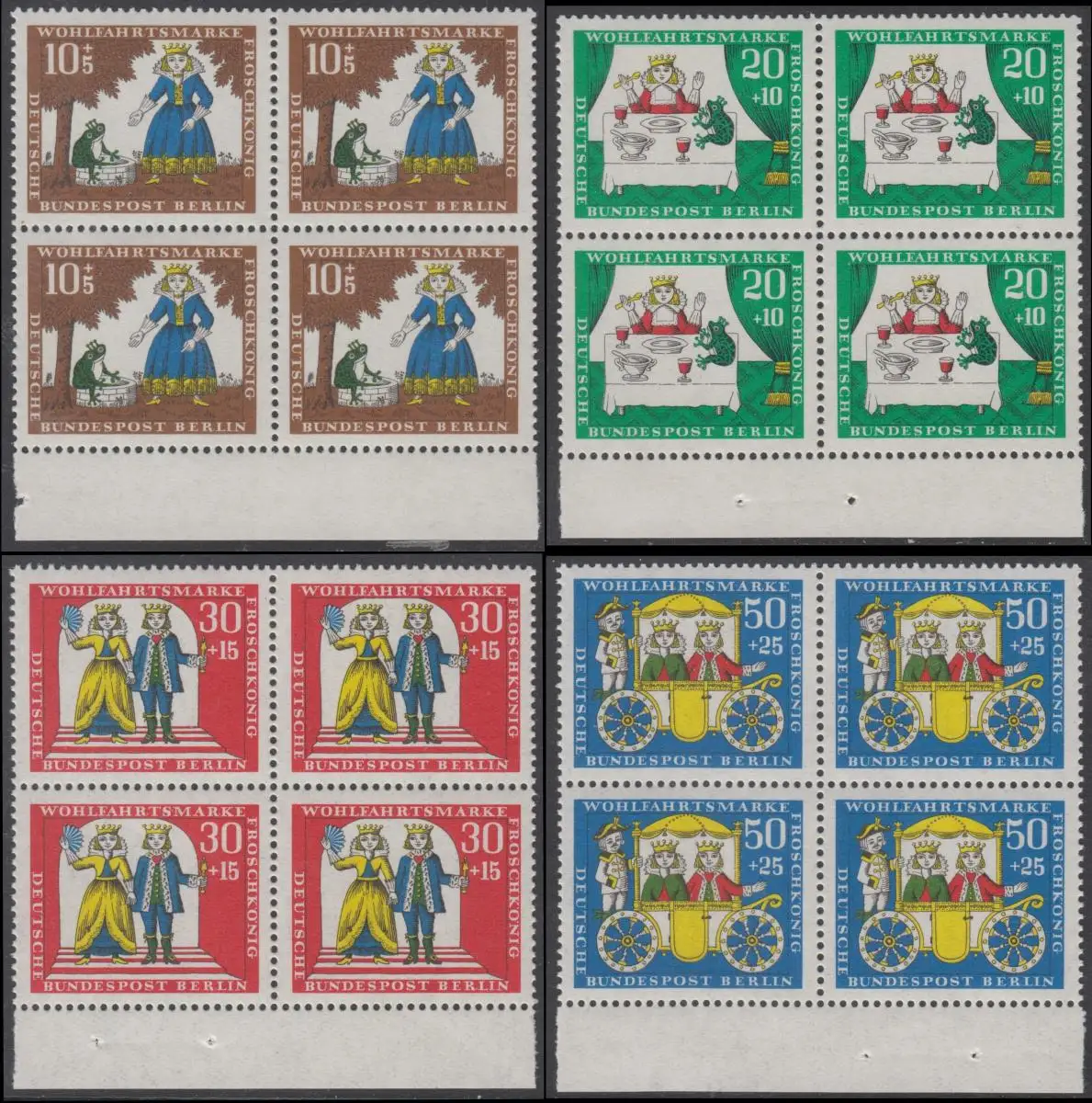 BERLIN 1966 Michel-Nummer 295-298 postfrisch SATZ(4) BLÖCKE RÄNDER unten - Märchen der Brüder Grimm: Der Froschkönig
