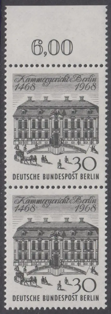 BERLIN 1968 Michel-Nummer 320 postfrisch vert.PAAR RAND oben (c) - Kammergericht Berlin