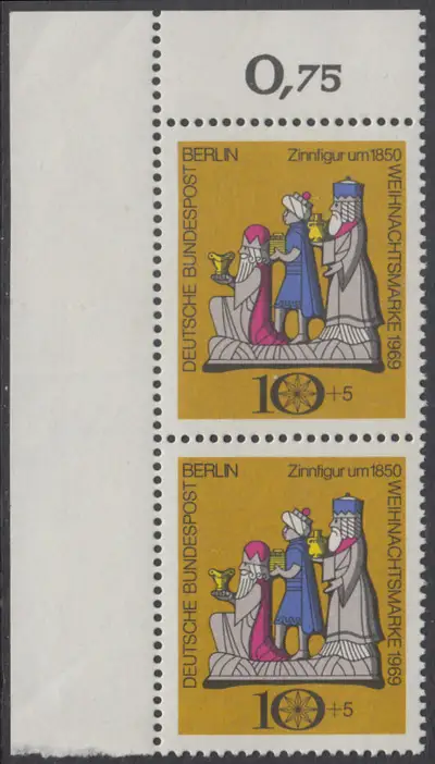 BERLIN 1969 Michel-Nummer 352 postfrisch vert.PAAR ECKRAND oben links - Weihnachten