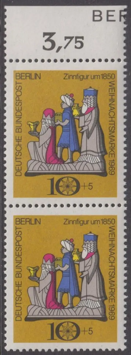BERLIN 1969 Michel-Nummer 352 postfrisch vert.PAAR RAND oben (a02) - Weihnachten