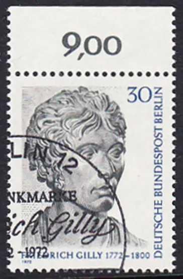 BERLIN 1972 Michel-Nummer 422 gestempelt EINZELMARKE RAND oben (d)