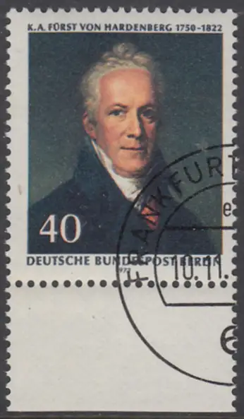 BERLIN 1972 Michel-Nummer 440 gestempelt EINZELMARKE RAND unten (a)