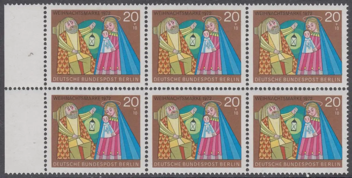 BERLIN 1972 Michel-Nummer 441 postfrisch horiz.BLOCK(6) RÄNDER links - Weihnachten