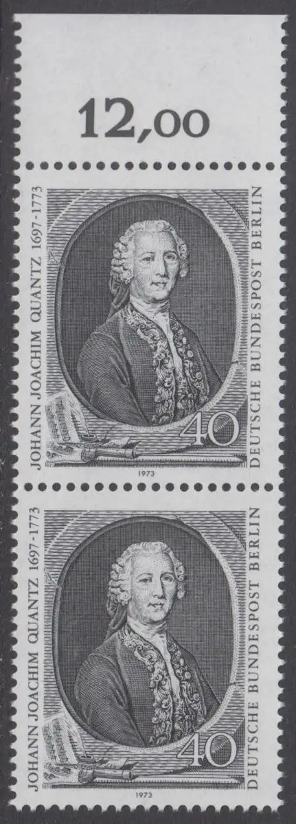 BERLIN 1973 Michel-Nummer 454 postfrisch vert.PAAR RAND oben (e) - Johann Joachim Quantz, Flötist und Komponist
