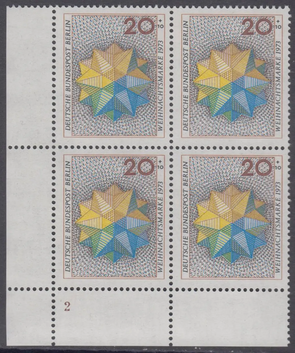 BERLIN 1973 Michel-Nummer 463 postfrisch BLOCK ECKRAND unten links m/ Formnummer - Weihnachten