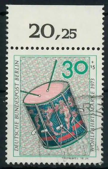 30 + 15 Pfg Wert aus der Ausgabe Wohlfahrt 1973 - Musikinstrumente - Trommel