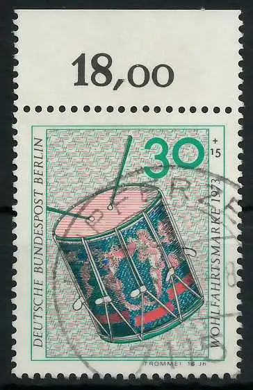 30 + 15 Pfg Wert aus der Ausgabe Wohlfahrt 1973 - Musikinstrumente - Trommel