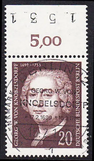 BERLIN 1974 Michel-Nummer 464 gestempelt EINZELMARKE RAND oben (e)