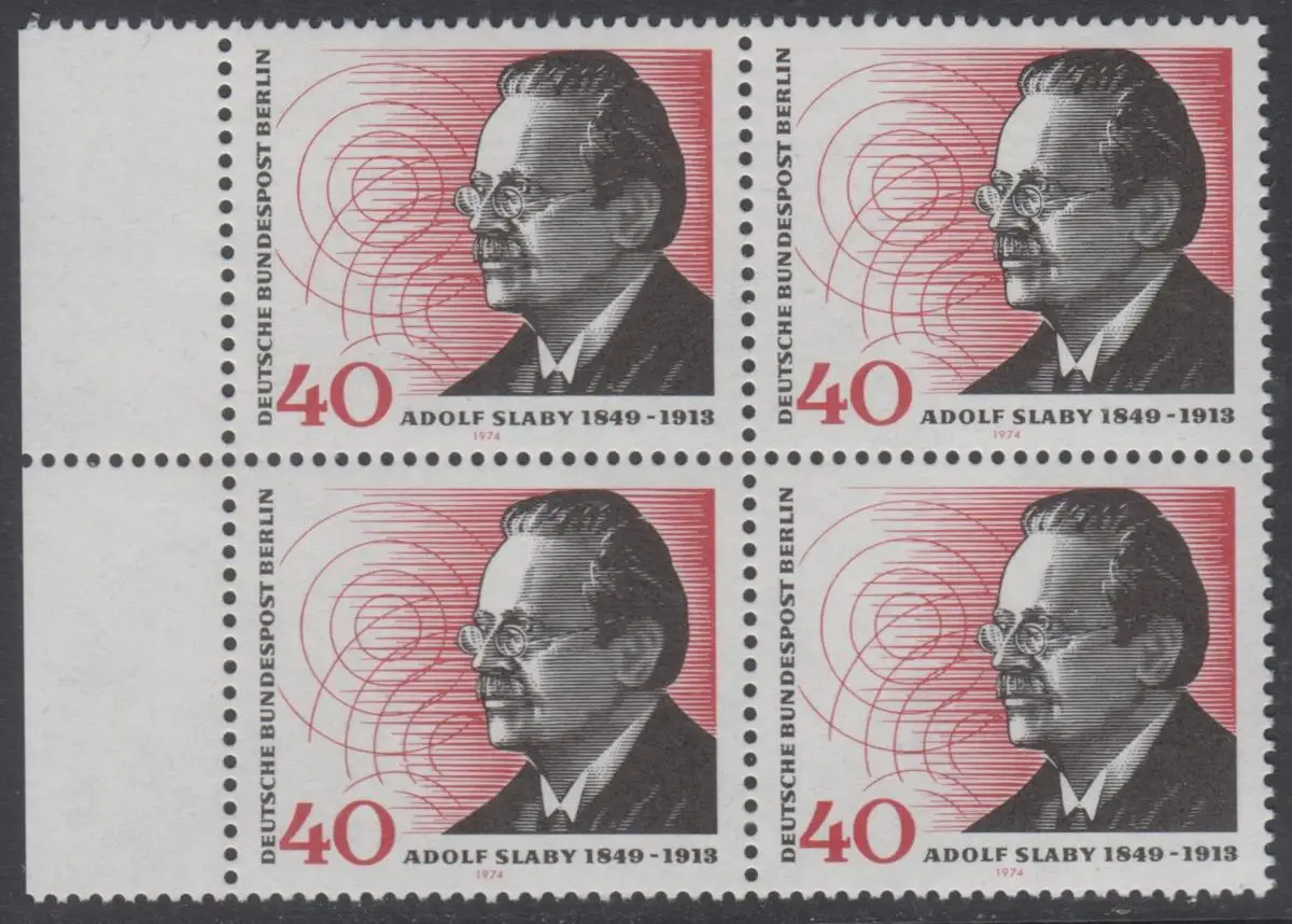 BERLIN 1974 Michel-Nummer 467 postfrisch BLOCK RÄNDER links - Adolf Slaby, Funktechniker